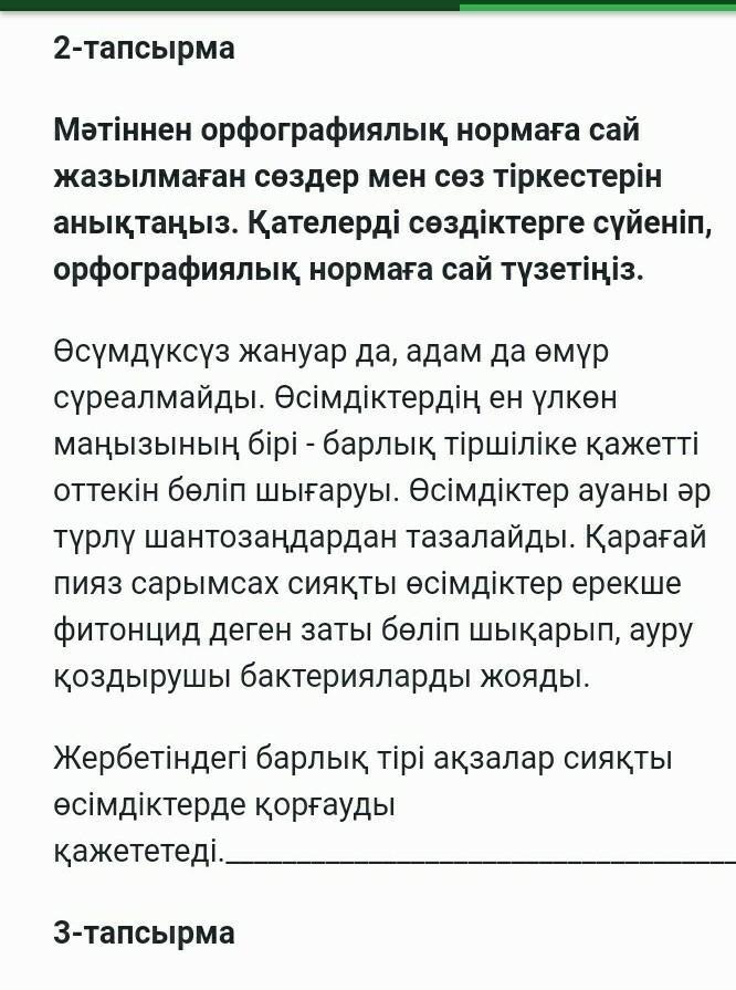 мына жерден Өсімүксүз дегеннің орынына Өсімдіксіздеп дұрыс сөздерін коясың