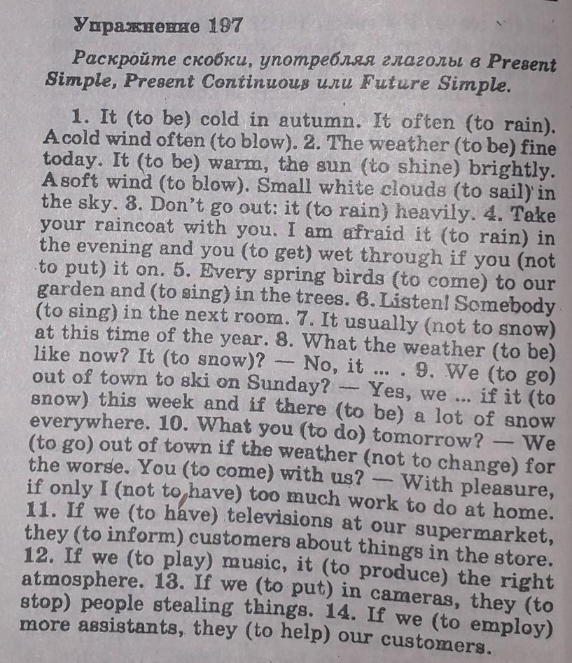2. The weather is fine today. It is warm, the sun is shining brightly. A soft wind is blowing. Small white clouds are sailing in the sky.