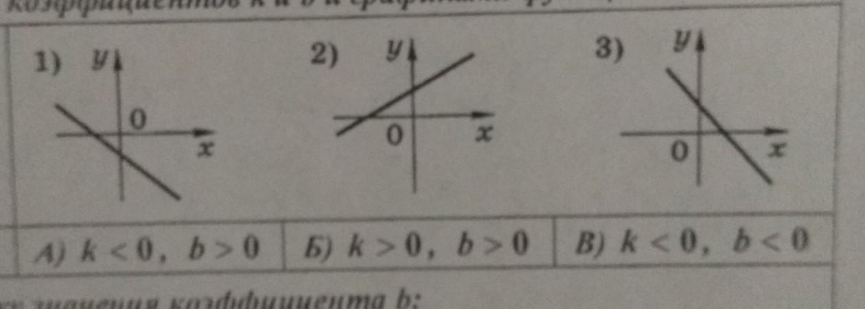 Установите соответствие между знаками коэффициентов k и b и графиками функций. Помогите пожалуйста, даю баллы!
