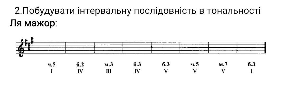 побудувати інтервальну послідовність в тональності ля мажор. допоможіть будь ласка!!!!!!!!!