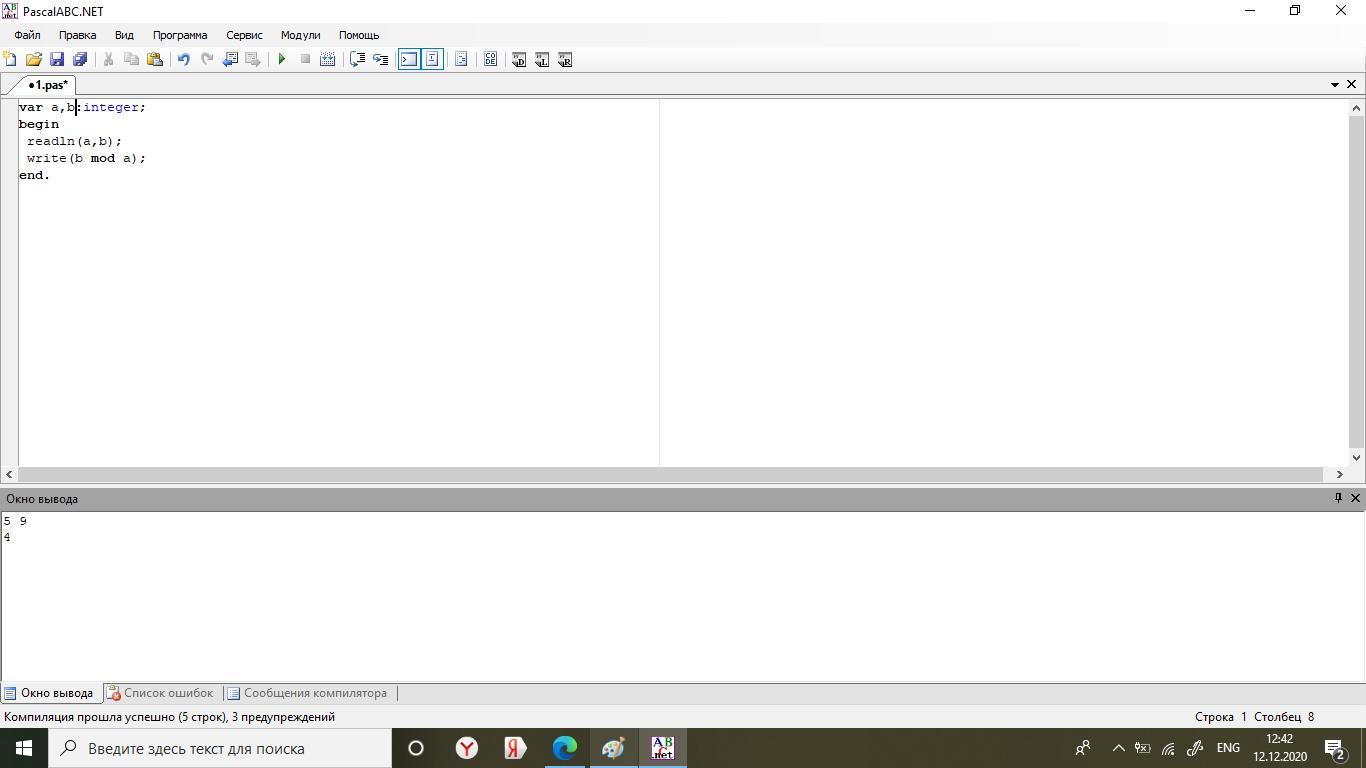 Даны целые положительные числа A и B (A > B). На отрезке длины A размещено максимально возможное количество отрезков длины B (без наложений). Используя операцию взятия остатка от деления нацело, найти длину незанятой части отрезка A.