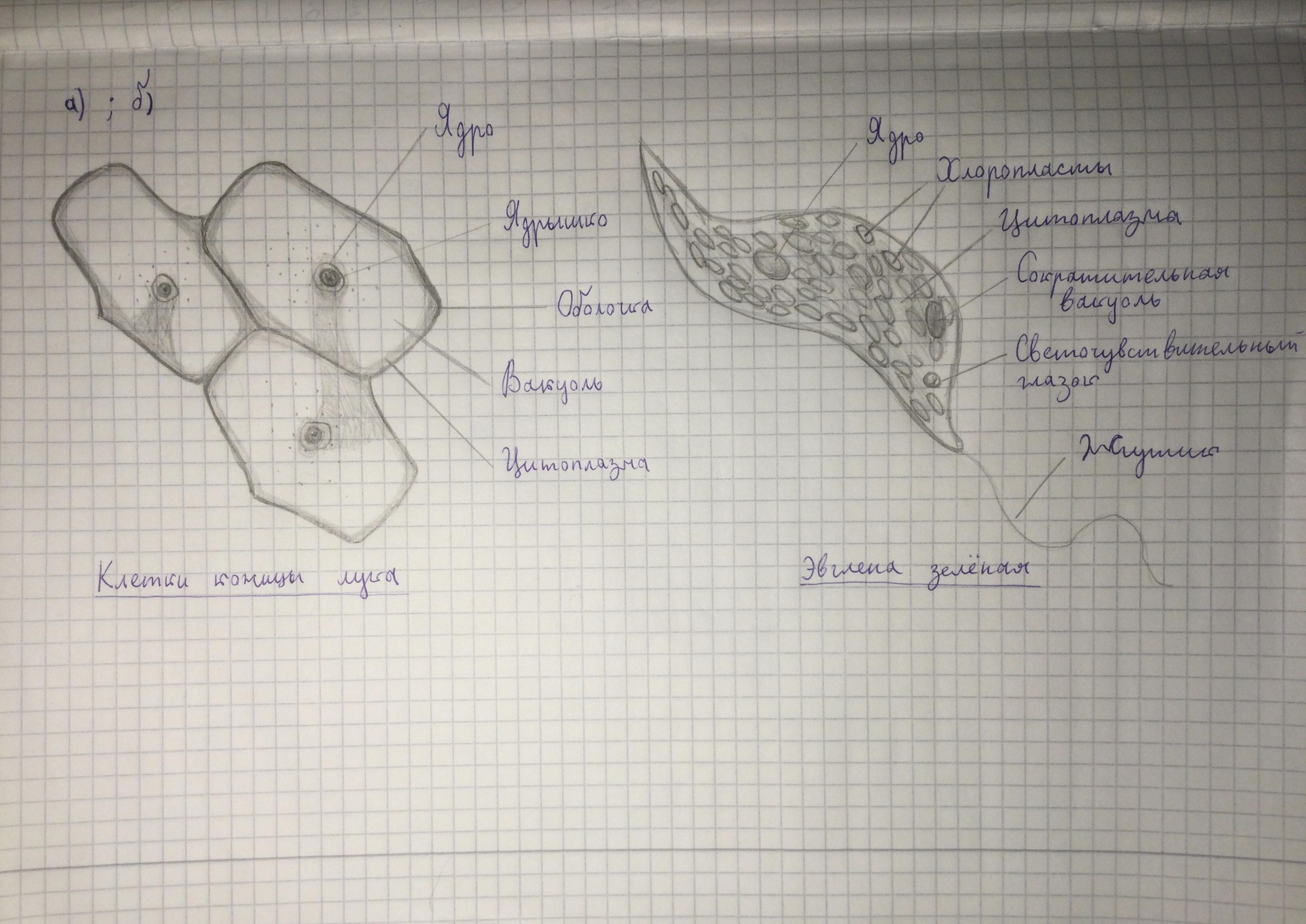 а)Рассмотрите на картинках кожицы лука и амебы обыкновенной (инфузории-туфельки или эвглены зеленой).