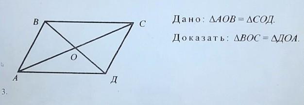 3). из пунктов 1-2 следует, что треугольники вос=доа по первому признаку равенства треугольников