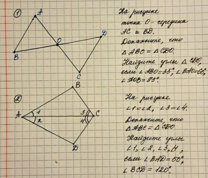 1)угол АВО=углу ДСО=35 градусов (как соответственные)