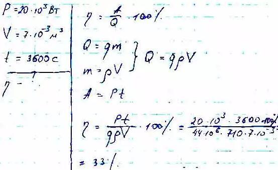 чему равен кпд двигателя внутреннего сгорания если при мощности 20 квт сжигается 7 л бензина в час?
