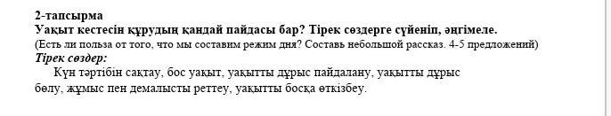Күн тәртібі бар адамдардың көп өнерлері болады.Себебі олар өз уақытын босқа өткізбейді.Мысалы;кітап оқу босқа уақыт өткізу емес,кітап-адамның рухани қорегі әрі кеңес беретін бірден-бір ақылшысы,досы.Ол тілімізді,ділімізді және қиял-күшімізді өз қалпында ұстап,ойлау қабілетімізді дамытады.Уақыт кестесін құрған адамдардың барлығы кітап оқуды қосады.Себебі;олда уақытты босқа өткізбеуге көмектеседі!