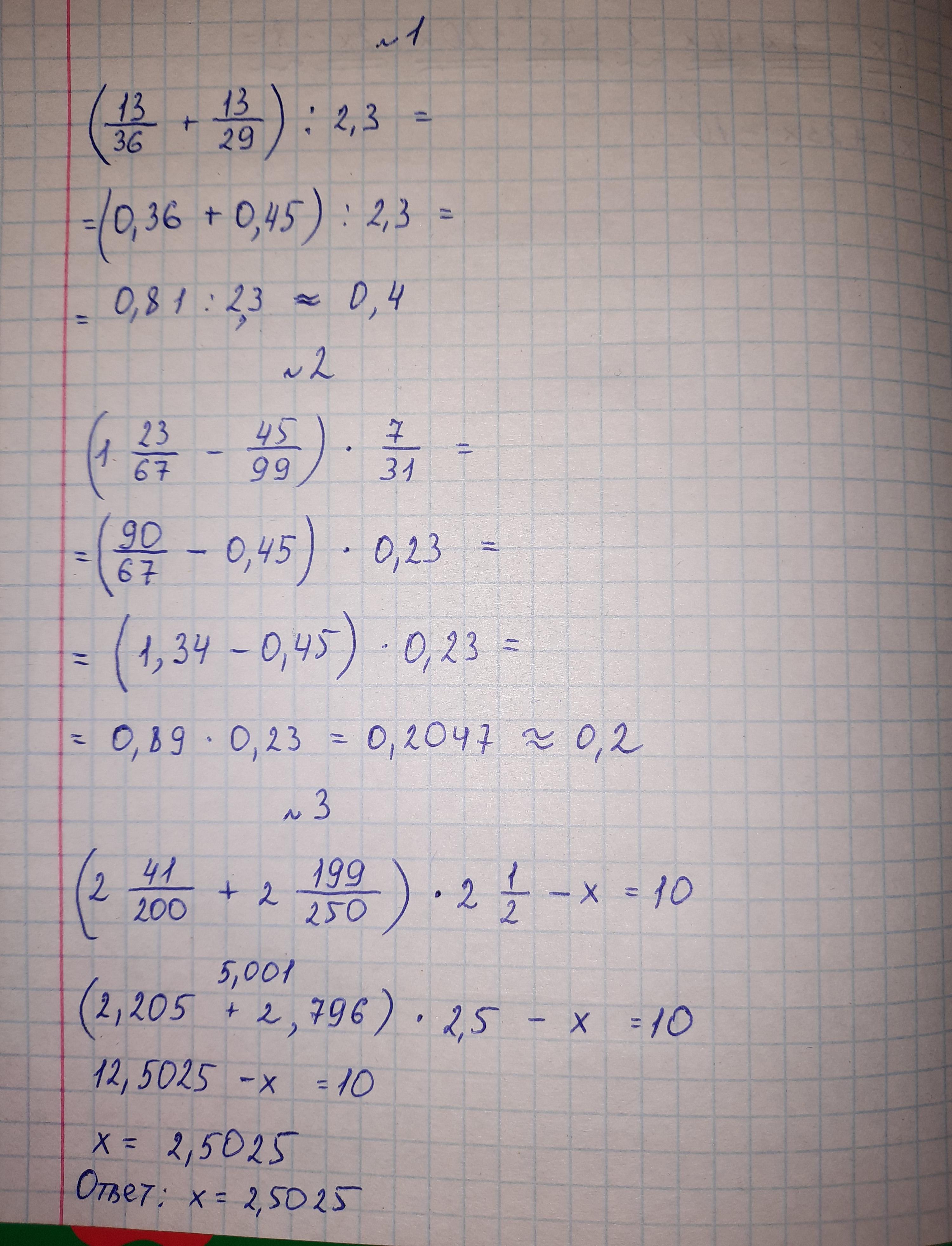 3. Решите уравнение: (2 41/200+ 2 199/250) ∙2 1/2-х=10