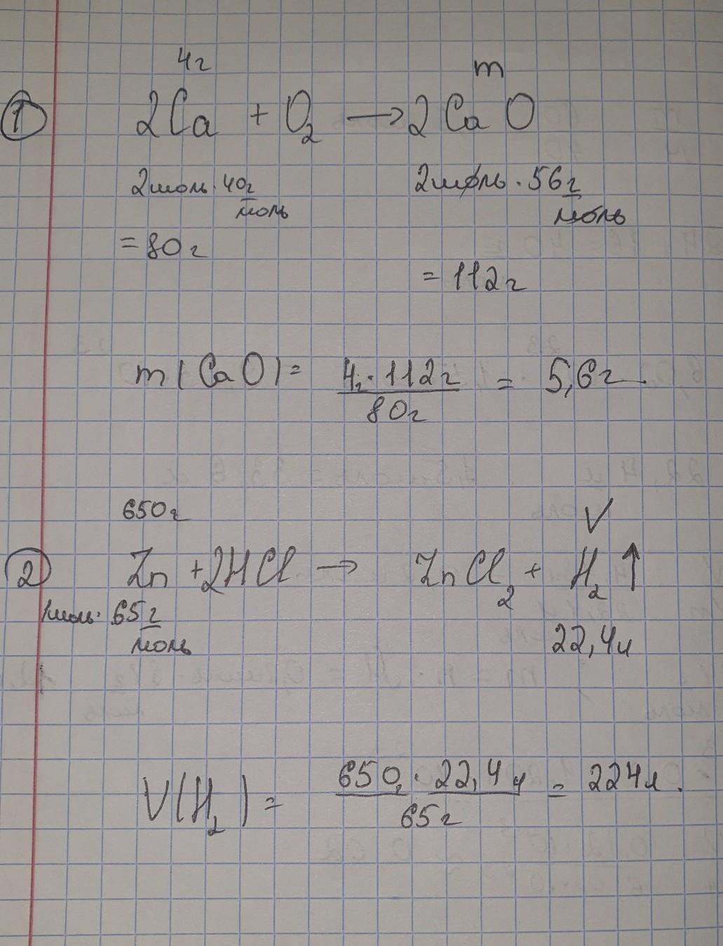 2. Найти объём газа, выделившегося при обработке 650г цинка соляной кислотой.