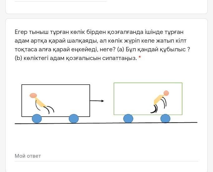 а)Людина всередині нахилиться вперед, коли автомобіль зупиниться, бо вона буде рухатися за своєю інерцією. Це явище так і називається - явище інерції.