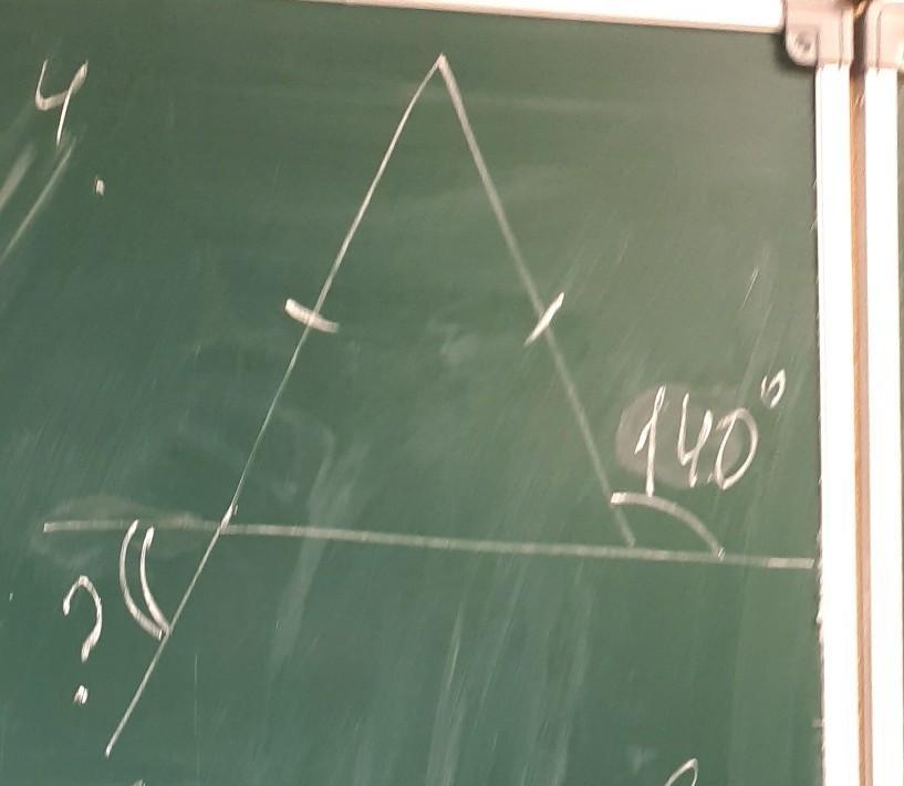 Итак,назовём этот треугольник АВС,он является равнобедренным.Сначало найдём угол с.Он равен 180-140=40.Т.к. треугольник равнобедренный,то угол а равен углу с.Так же,тут присутствуют накрест лежащие углы,при параллельных прямых и секущей,есть свойство-накрест лежащие углы равны, следовательно,угол А равен накрест лежащему,искомому углу.