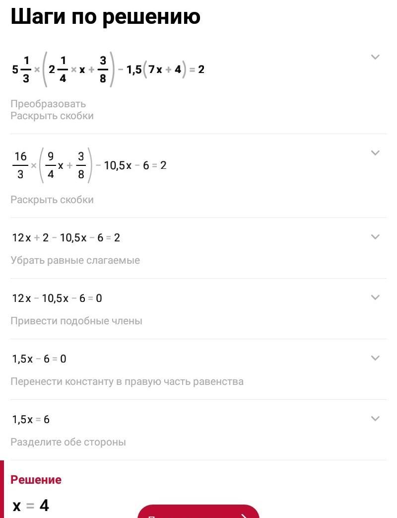 4) 12x-10.5x + 2-6 = 1.5x -4