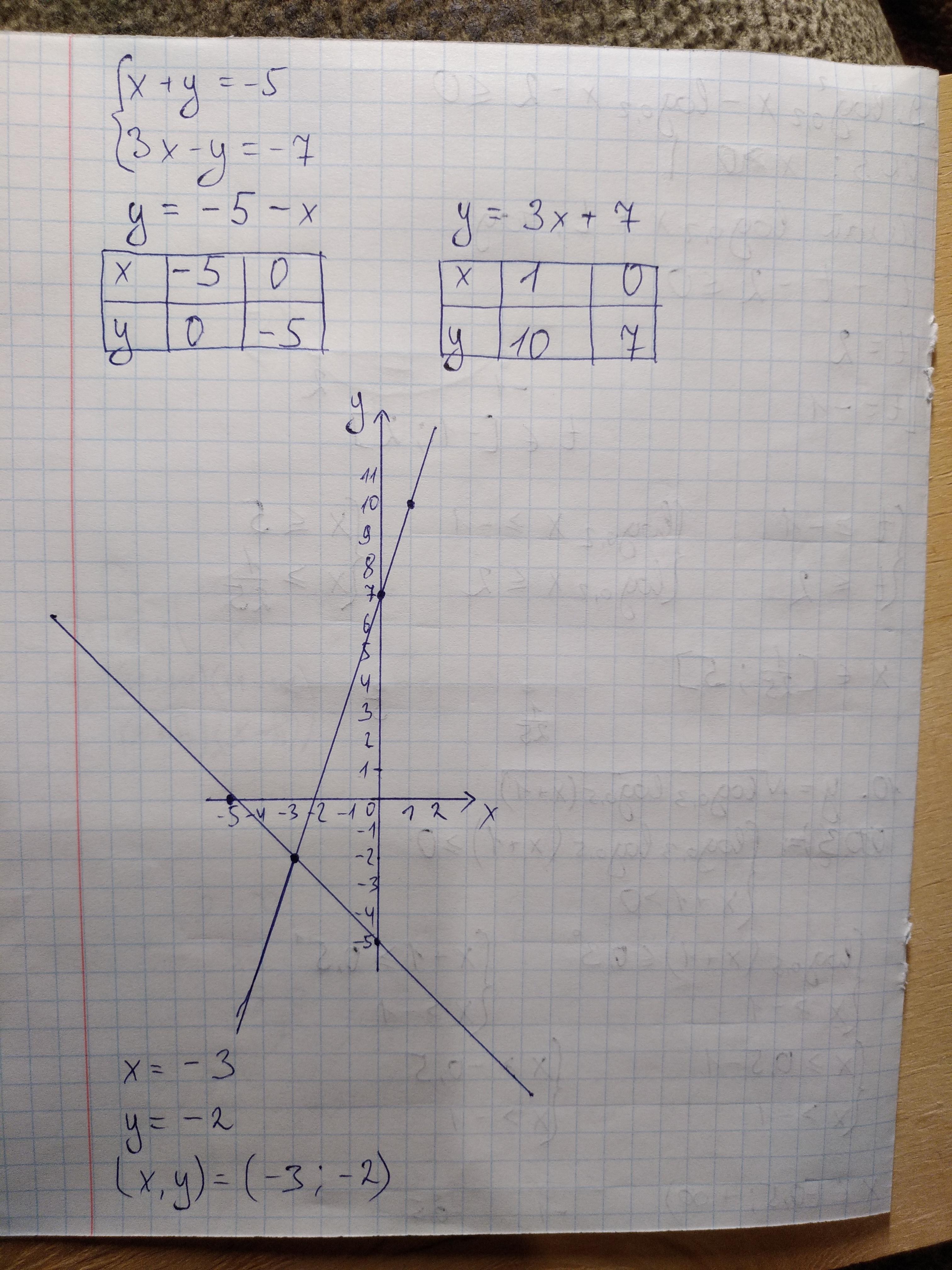 Спочатку виразити у, потім підставити у друге рівняння. Підібрати можливі значення. побудувати графіки, точка перетину і є відповіддю