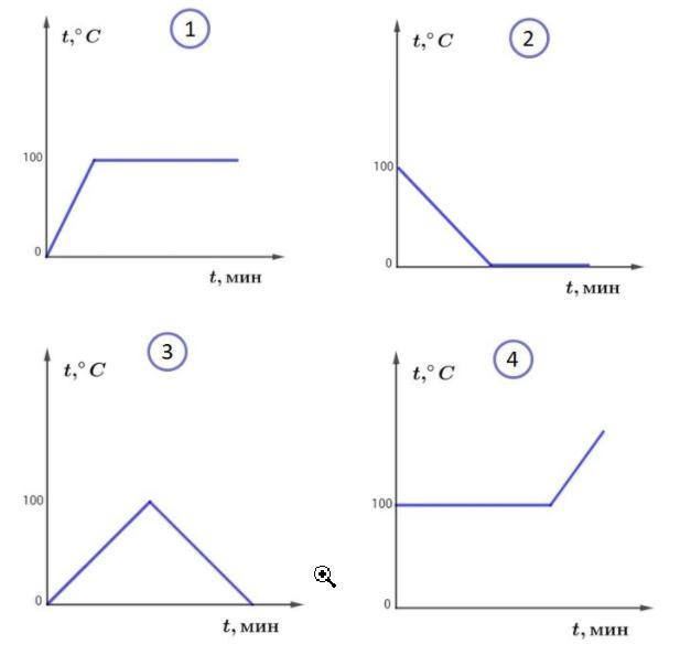 и замёрзла. Какой график зависимости температуры от времени соответствует описанному процессу? Атмосферное давление считать нормальным.