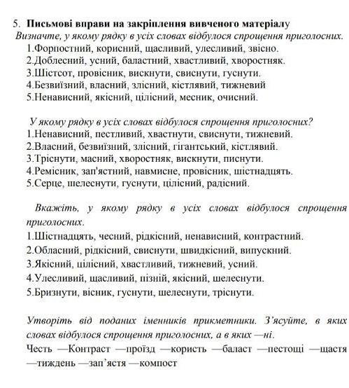 чесний (є), контрастний (нема), проїзний (є), корисний (є), баластний (нема), пестливий (нема), щасливий (є), тижневий (є), зап'ястний (нема), компостний (нема)