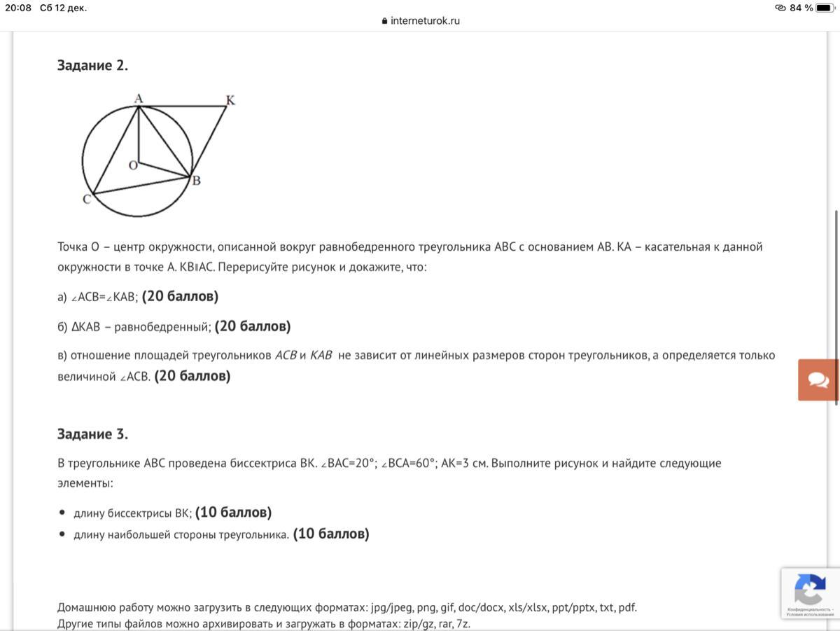 в) отношение площадей треугольников ACB и KAB не зависит от линейных размеров сторон треугольников, а определяется только величиной ∠ACB. (20 баллов)
