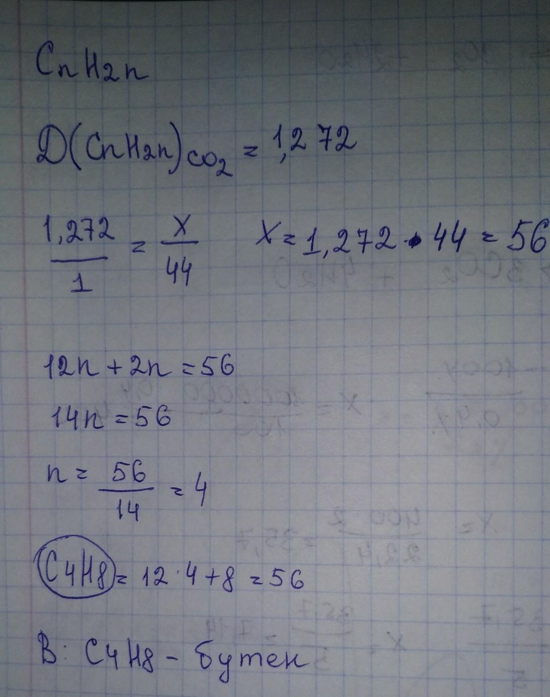 знайти формулу алкену, якщо відносна густина цієї речовини за оксидом карбону (|V) дорівнює 1,272