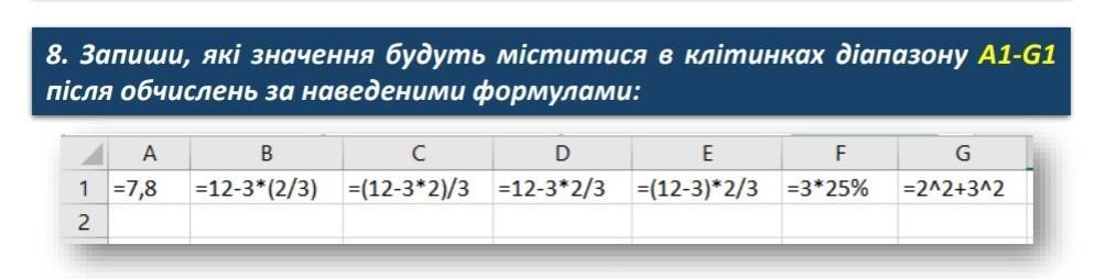 ой я это делала первое-8 ; второе -10; третье-2; 4-10;5-6;7-0,75;8-13;