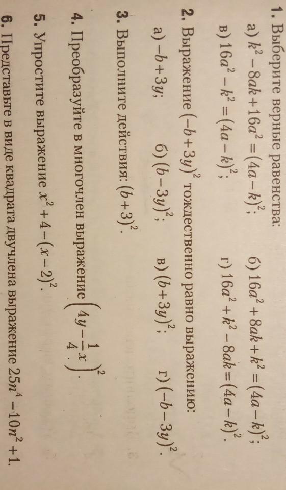 1. (4a-k)²=16a²-8ak+k² а,г