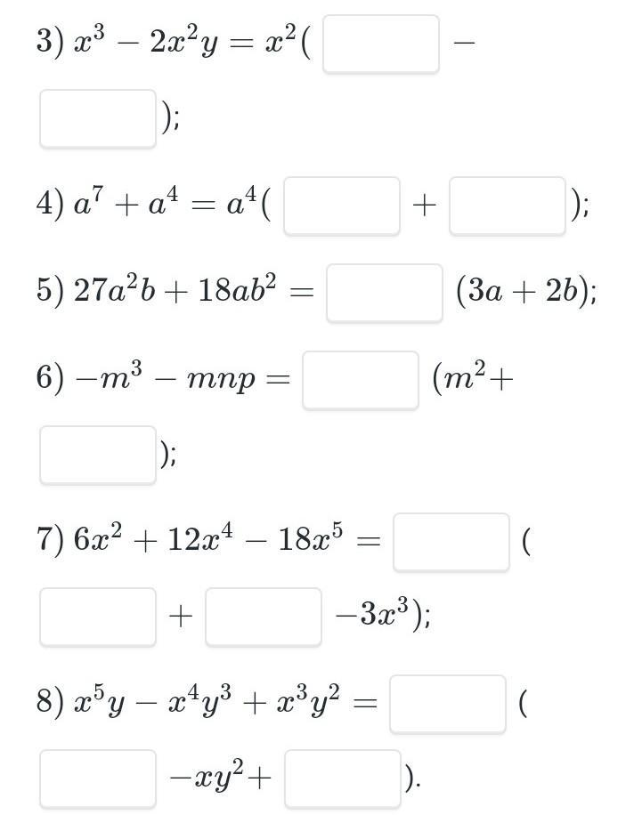 8)x^5y - x^4y^3 + x^3y^2 = x^3y ( x^2 - xy^2+y)