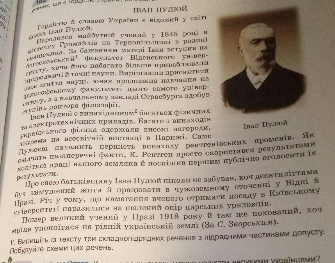 іван пулюй випішіть із тексту три складнопідрядних речення з підрядними частинами допусту побудуйте схеми цих речень
