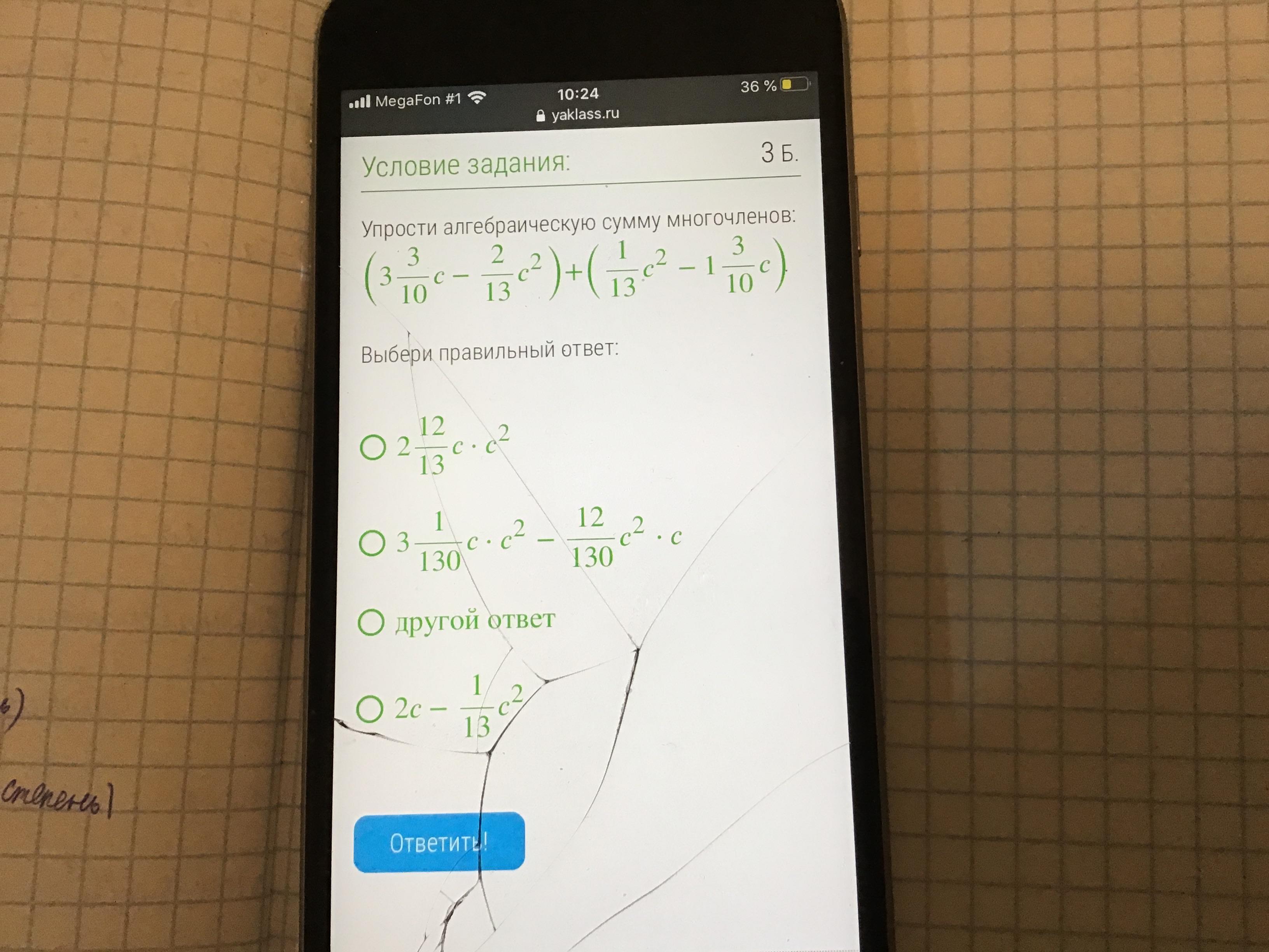 (3 \frac{3}{10} c -  \frac{2}{13}  {c}^{2} ) + ( \frac{1}{13}  {c}^{2}  - 1 \frac{3}{10} c) \\ ( \frac{33}{10} c -  \frac{2}{13}  {c}^{2} ) + ( \frac{1}{13}  {c}^{2}  -  \frac{13}{10} c) \\  \frac{33}{10} c -  \frac{2}{13}  {c}^{2}  +  \frac{1}{13}  {c}^{2}  -  \frac{13}{10} c \\ 2c -  \frac{1}{13}  {c}^{2}