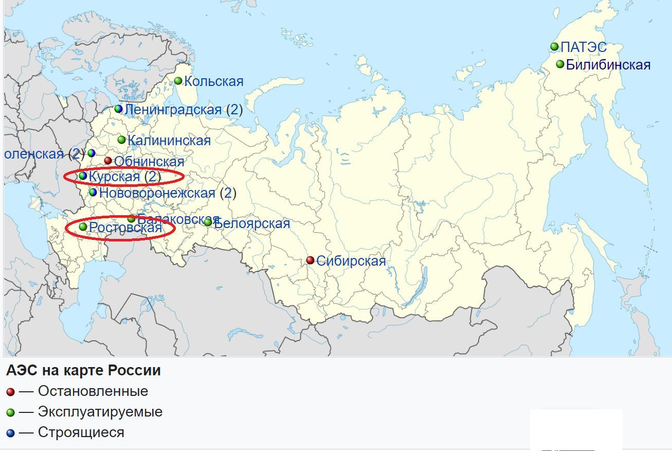 Как видно из карты, которая дана ниже в приложении, АЭС работают в Курской и Ростовской областях.