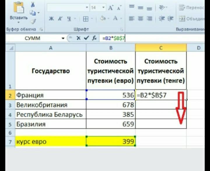 Если нужна ещё сумма всех путевок, то вот формула: =СУММ(В2:В5)