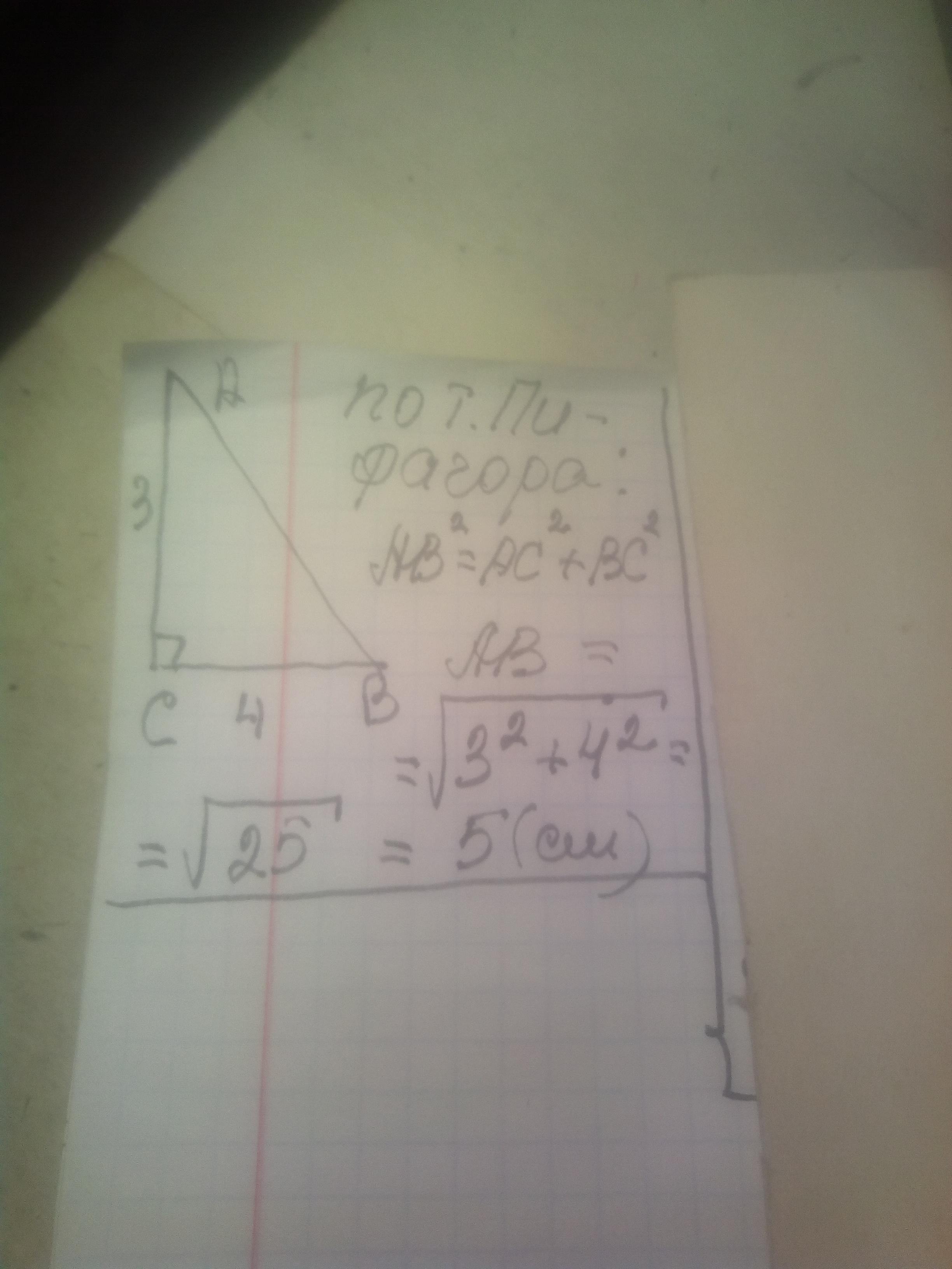 Дан прямоугольный треугольник ABC, угол C=90 и AC=3, BC=4. Найдите длину AB.