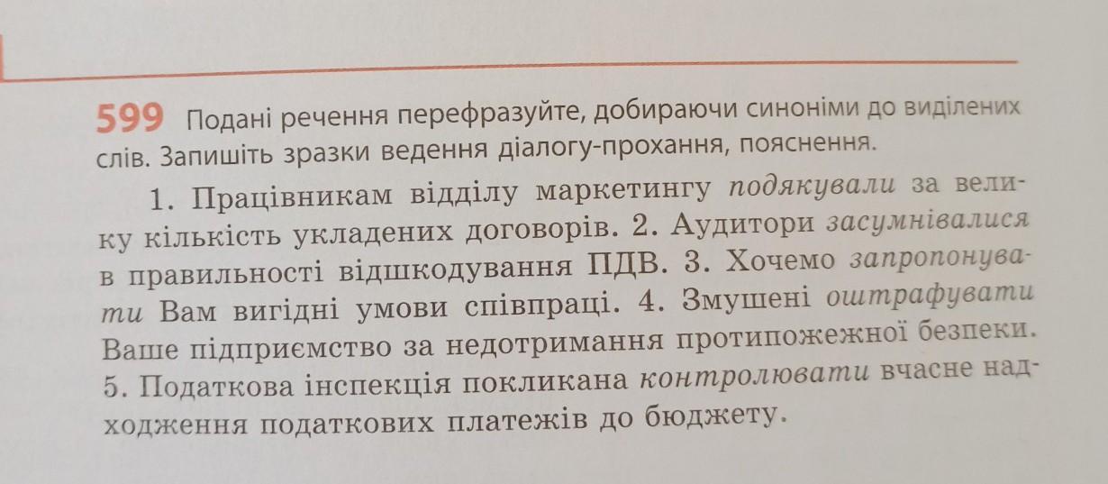 Працівникам відділу маркетингу були вдячні за велику кількість укладених договорів. Аудитори отримали сумніви в правильності відшкодування ПДВ. Хочемо присогласити Вам вигідні умови співпраці. Змушені надати штраф Вашому підприємству за недотримання протипожежної безпеки. Податкова інспекція покликана слідкувати за вчасними надходженнями податкових платежів до бюджету