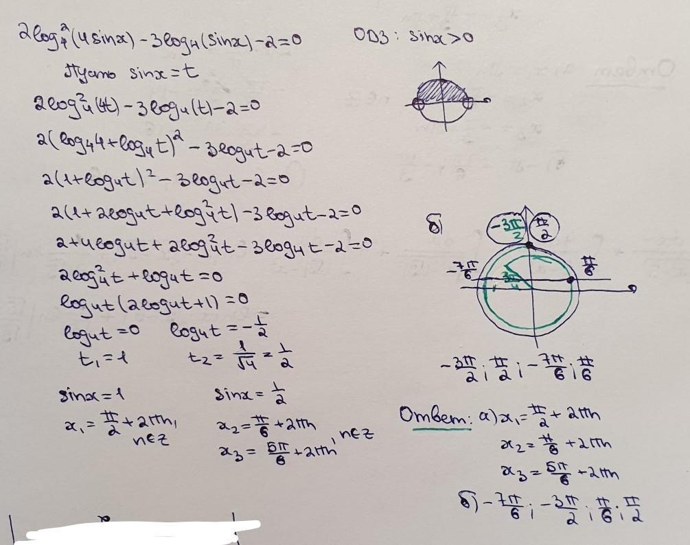 A) Решите уравнение: 2log4^2(4sinx)-3log4(sinx)-2=0