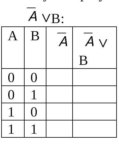 инверсию,то есть не А(А) . Затем мы должны сложить исходы В и Не А. Это дизюнкйция. значит для истины нам нужена хотя бы одна истина