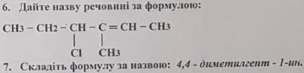 В 7 составьть формулу по названию: 4,4 - диметилгепт - 1-ин