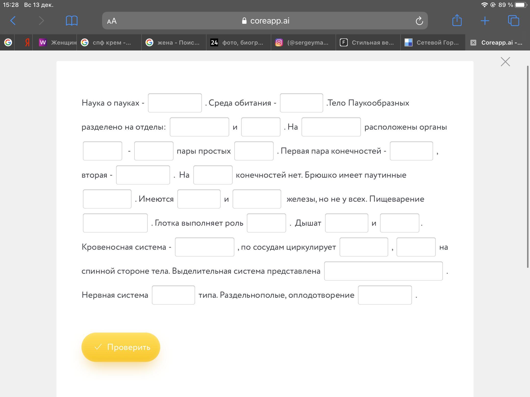 Брюшко имеет паутинные железы(паутинные бородавки).