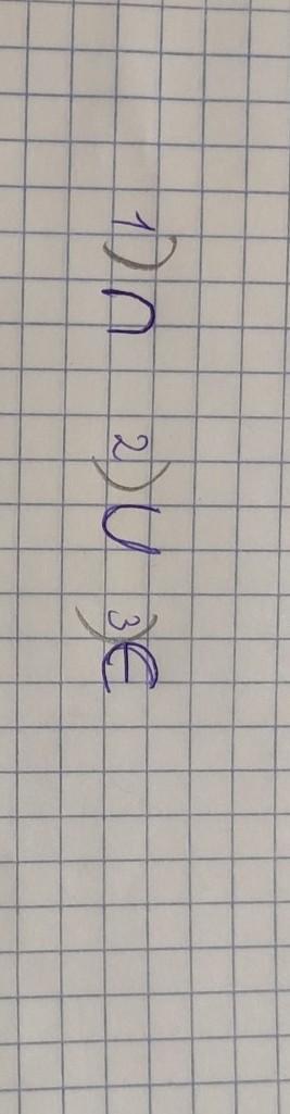 1)знак пересечения 2)знак объединения 3)знак принадлежности.