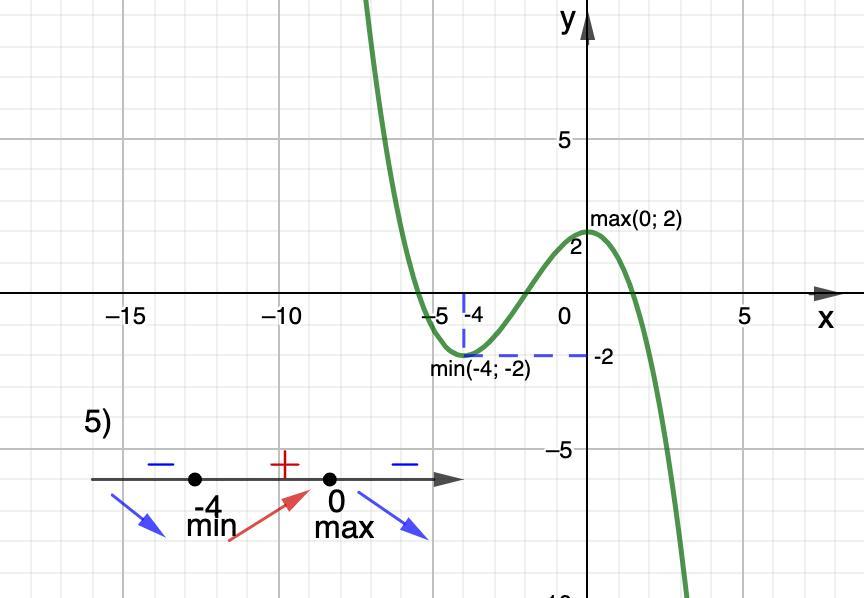 Функция возрастает при х∈[-4; 0]; убывает при х∈(-∞; -4]∪[0; +∞).