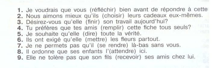 1. reflechissiez 2. choisissent 3. finisse 4. remplissent 5. dise 6. mette 7. se rende 8. attendions 9. recoivent