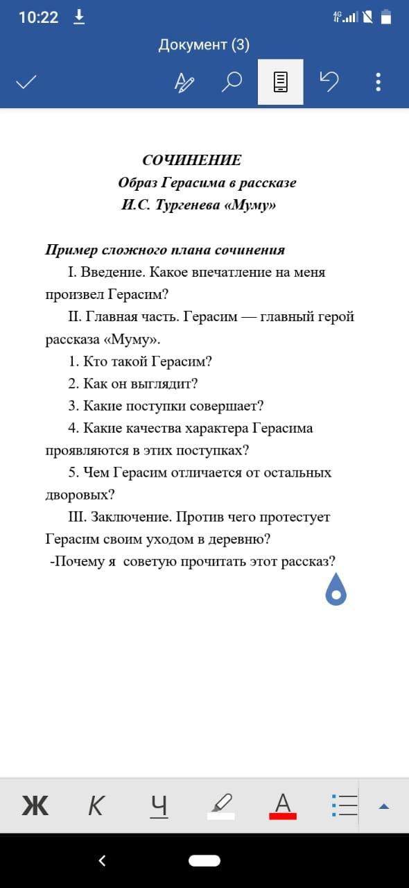 Сюжет является в том, что одна барыня пожилых лет взяла к себе в дворники Герасима. Мужчина был высокого роста и ничего не слышал, с самого рождения был глухой. Он очень трудолюбивый, занимался тяжелой работой, пахал, косил. Но когда в его руках оказалась метла и лопата, то такая работа показалась ему шуткой. Он быстро и легко ее выполнял, затем он просто отходил в уголок и лежал во дворе на земле. Его многие боялись.