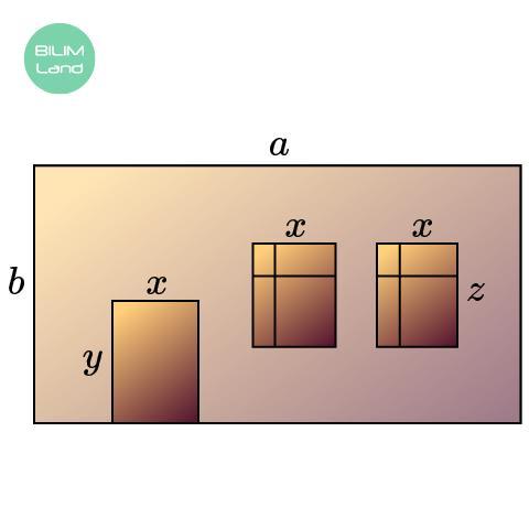 На рисунке изображена одна из стен дома, ширина которой равна a метров, а высота – b метров. В стене прорезаны 2 окна шириной x м, высотой z м и дверь шириной x м и высотой y м. Напиши выражение для вычисления площади закрашенной части стены.