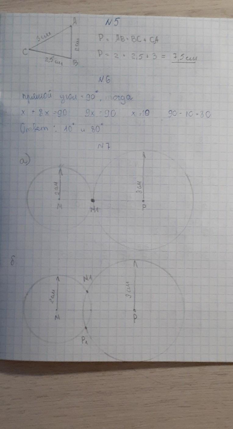 Найдите эти углы.7. Нарисуйте окружность с центром в т. М радиусом 2 см и окружность с центром в т.