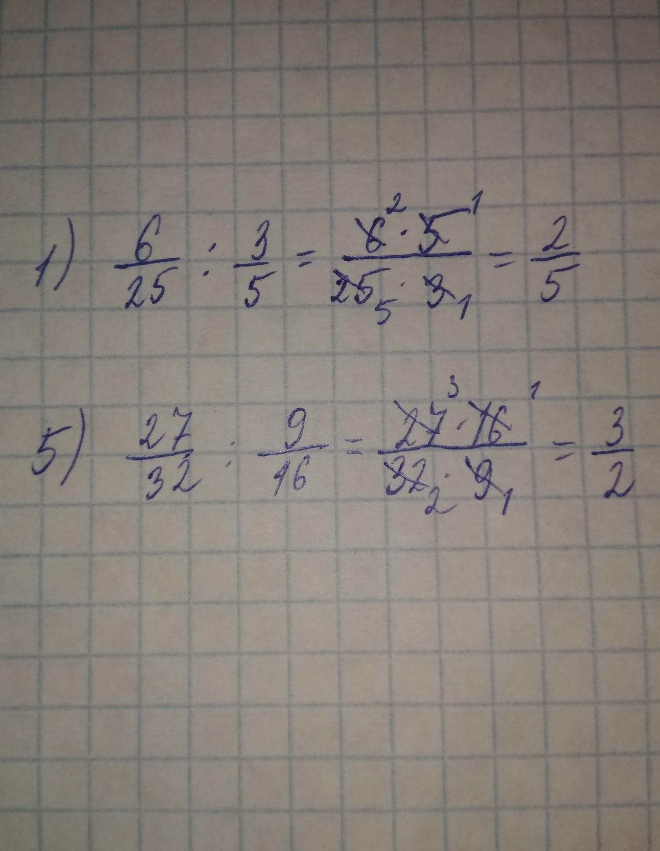 1) 6/25 : 3/5 = 6/25 * 5/3 = 6*5/25*3 = 2/5 (или 0.4)