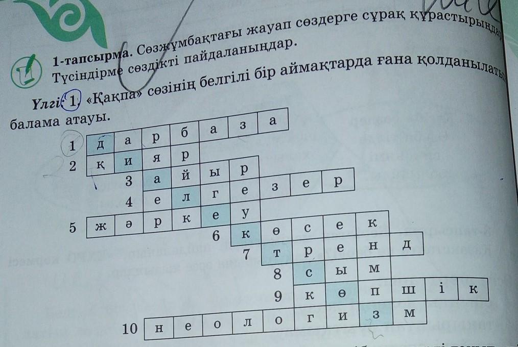1-тапсырма. Сөзжұмбақтағы жауап сөздерге сұрақ құрастырыңда