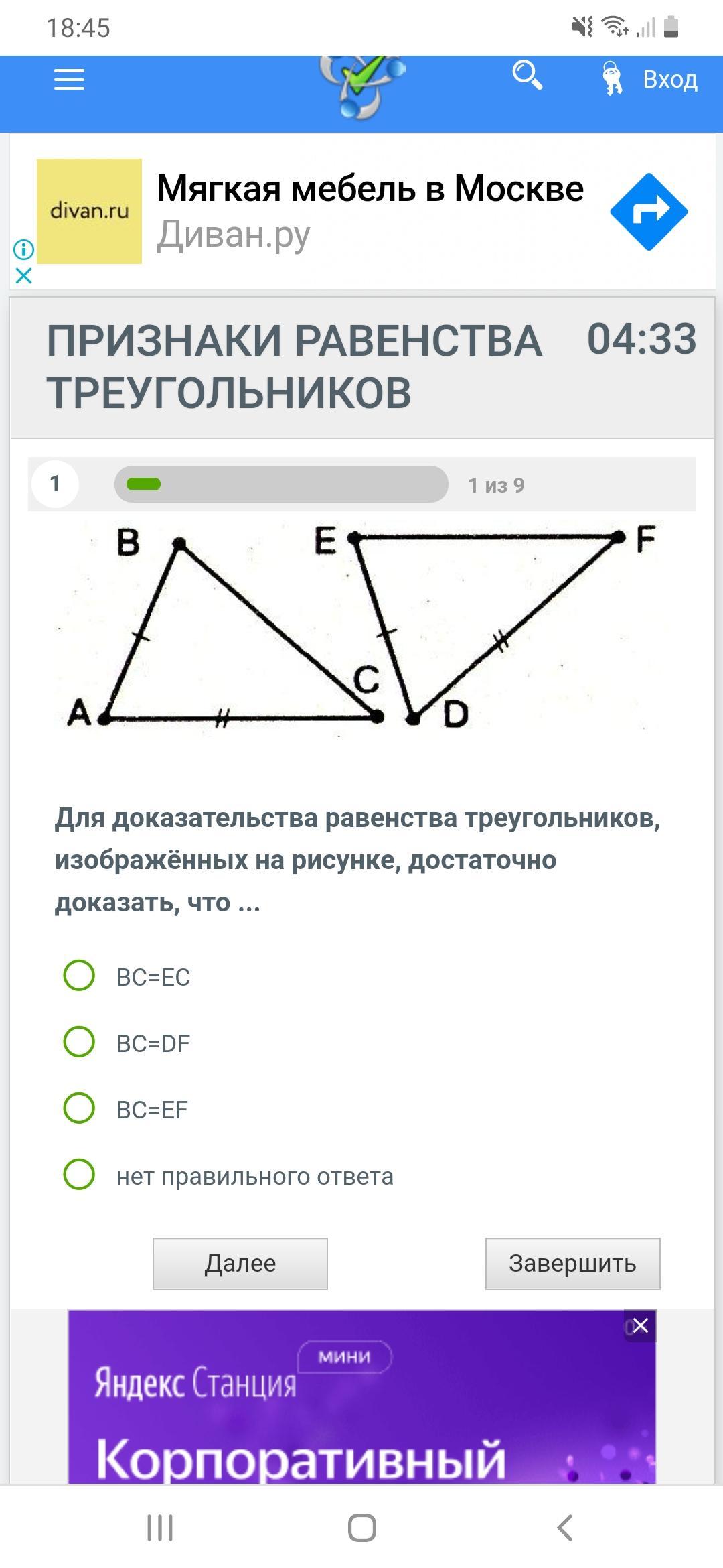 Для того чтобы доказать равенство треугольников достаточно доказать что вс=df