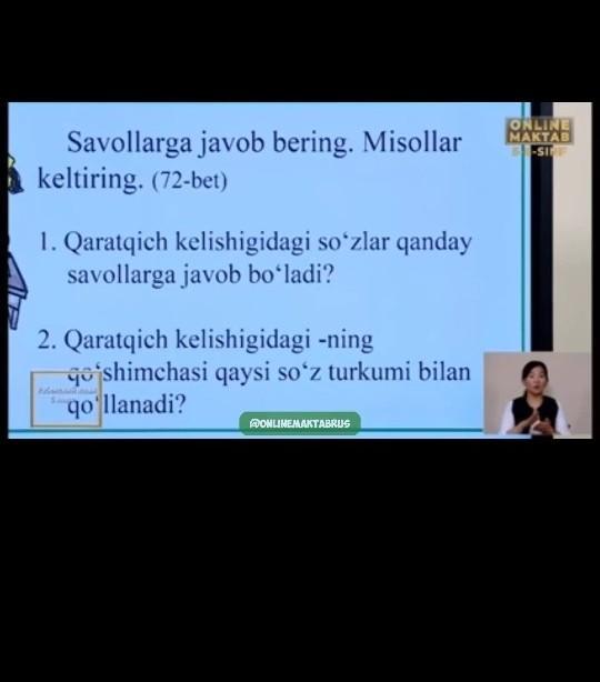 2)Qaratqich kelishigidagi -ning qo'shimchasi ot so'z turkumi bilan qo'llanadi.