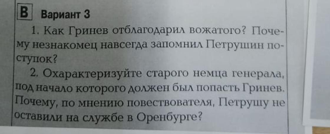 1.За то, что вожатый вывел его из снежного бурана, фактически сохранив ему этим жизнь, Гринев в благодарность дарит ему свой тулуп, потому что замечает, что провожатый легко одет для такой холодной погоды. Еще можно сказать что на фоне остальных, которые считают, что он все равно его пропьет, Гринев относится к нему с уважением, и именно поэтому потом Пугачев помогает ему позже