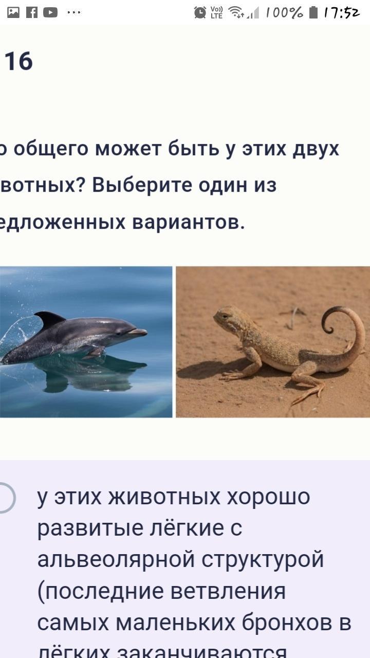 Что общего может быть у этих двух животных? Выберите один из предложенных вариантов.