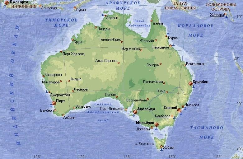 1. Изучите карту Австралии и окружающих её морей. Какие географи-