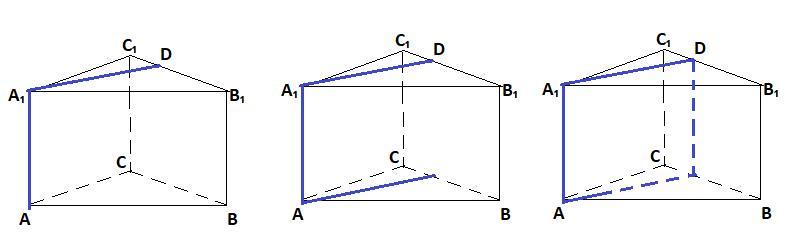 АВСА₁В₁С₁ треугольная призма. Постройте сечение призмы плоскостью , проходящей через ребро АА₁ и точку D , которая лежит на ребре В₁С₁