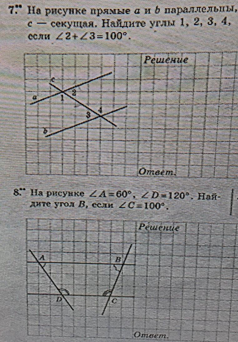 7) 100:2=50° угол 2=50°; угол 3=50°; <1=<4=180°-50°=130°