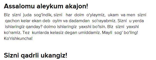 burchini oʻtayotgan akangiz yoki tanishingizga xat yozing.