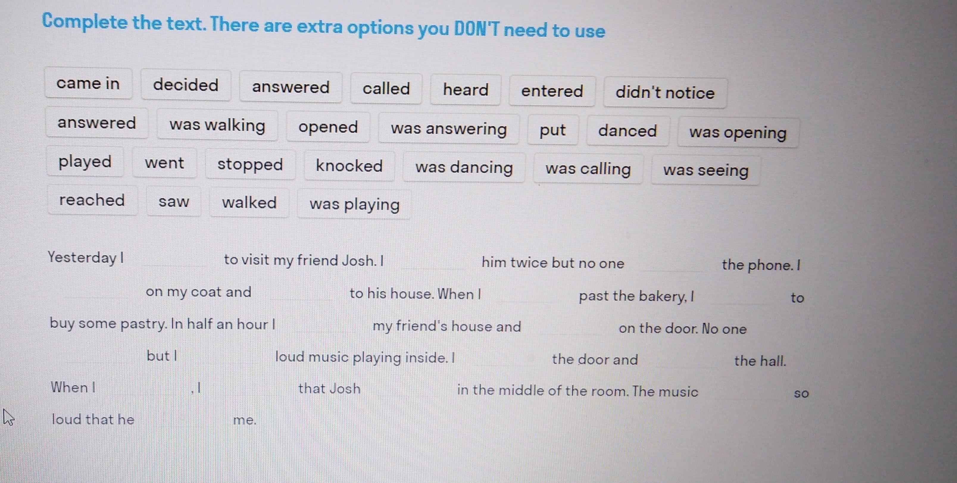 не уверен в 4 и в 9 (не уверен что должно быть: past continuos или past simple)